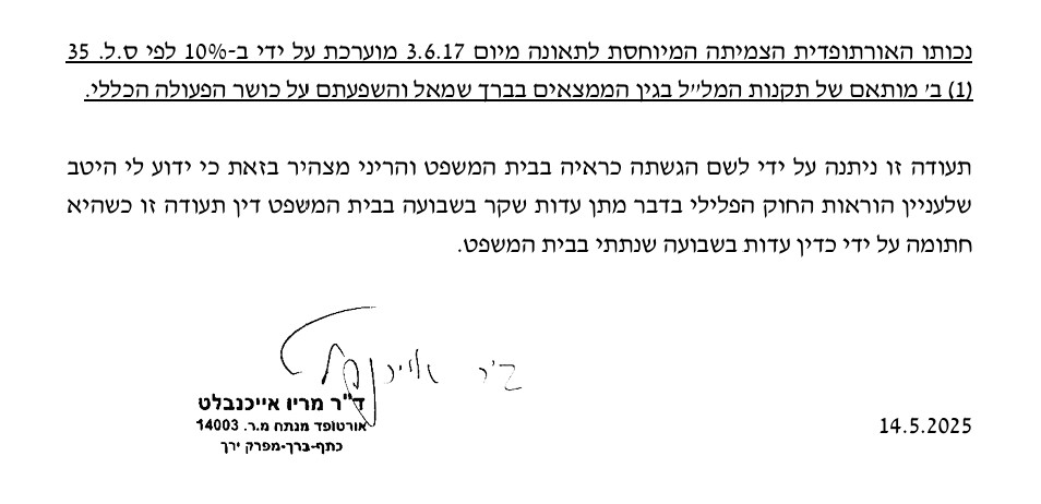 - ויתור מוקדם על בדיקת מומחה אורתופדי.