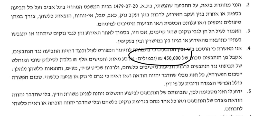 לקוחה שלנו שניזוקה בכתף במהלך תמרון קריסטלר קיבלה לידיה סכום כסף ראוי בפשרה: